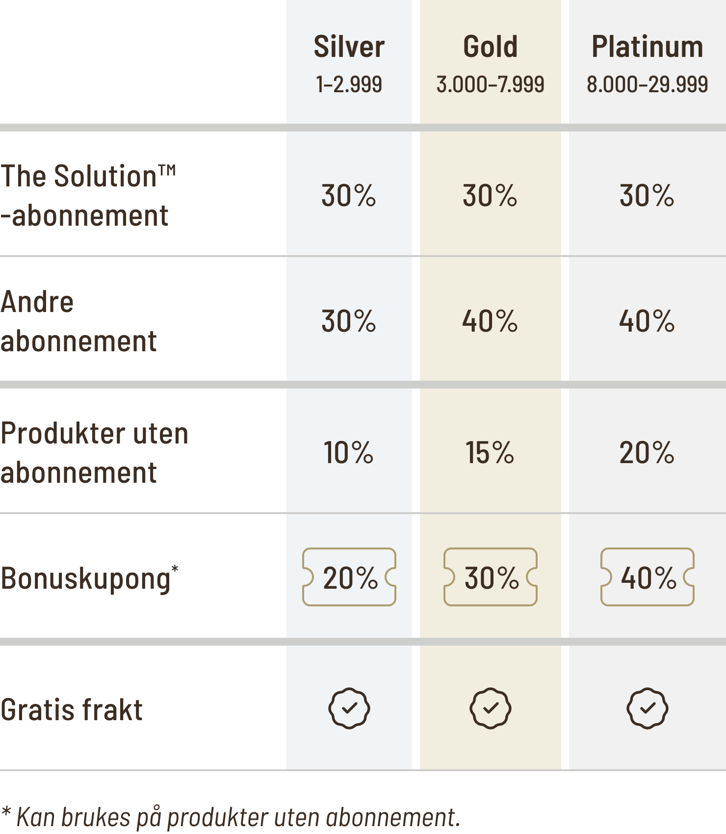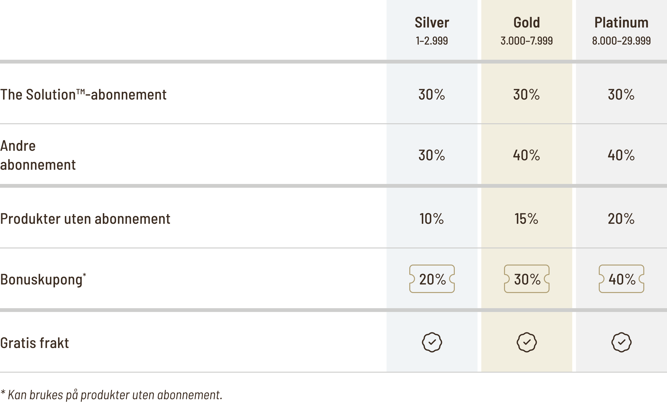 Bonuskupongene dobler din rabatt på produkter uten abonnement.