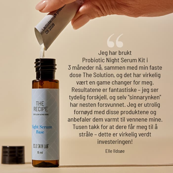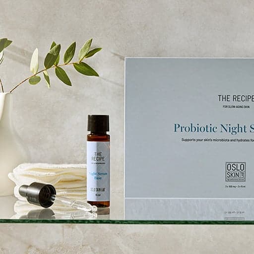 Probiotic Night Serum Kit er et unikt  tofasesystem formulert med Lactodermis®, et unikt probiotisk kompleks som styrker hudens naturlige barriere og et balansert mikrobiom. Sammen med fuktighetsgivende hyaluronsyre, tilfører denne avanserte formelen intensiv fuktighet, plumper huden og bidrar til en balansert og motstandsdyktig hudbarriere. Inkluder serumet i kveldsrutinen din – og våkn opp til en strålende hud hver morgen.